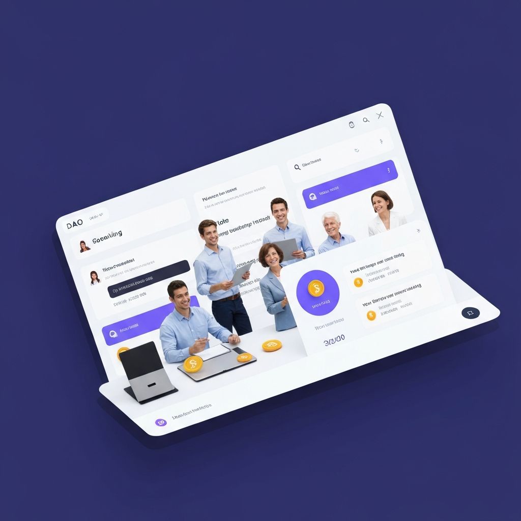 Decentralized autonomous organization platform with on-chain voting, treasury management, and proposal systems.